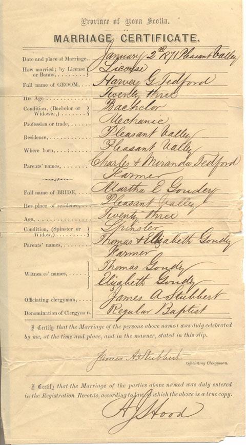 | 2. | Josephine Harrison Tedford | South Ohio, Yarmouth, Nova Scotia, Canada October 09, 1873 |