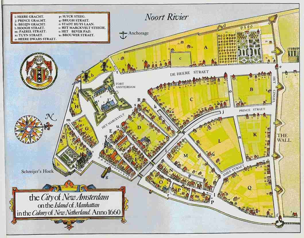 | In 1660 Pieter Casparszen van Naerden shows up on the list of land owners in the City of New Amsterdam. He is the owner of a home and associated land designated D-8 on the New Amsterdam map of 1660. PRINCE STRAET on the 1660 Map is apparently the same street that was later named Broad Street. |